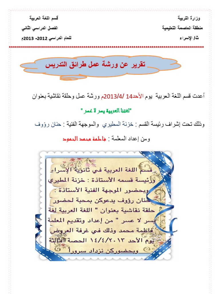 الجامعة المستنصرية الدراسات الاولية تقرير حول ورشة عمل