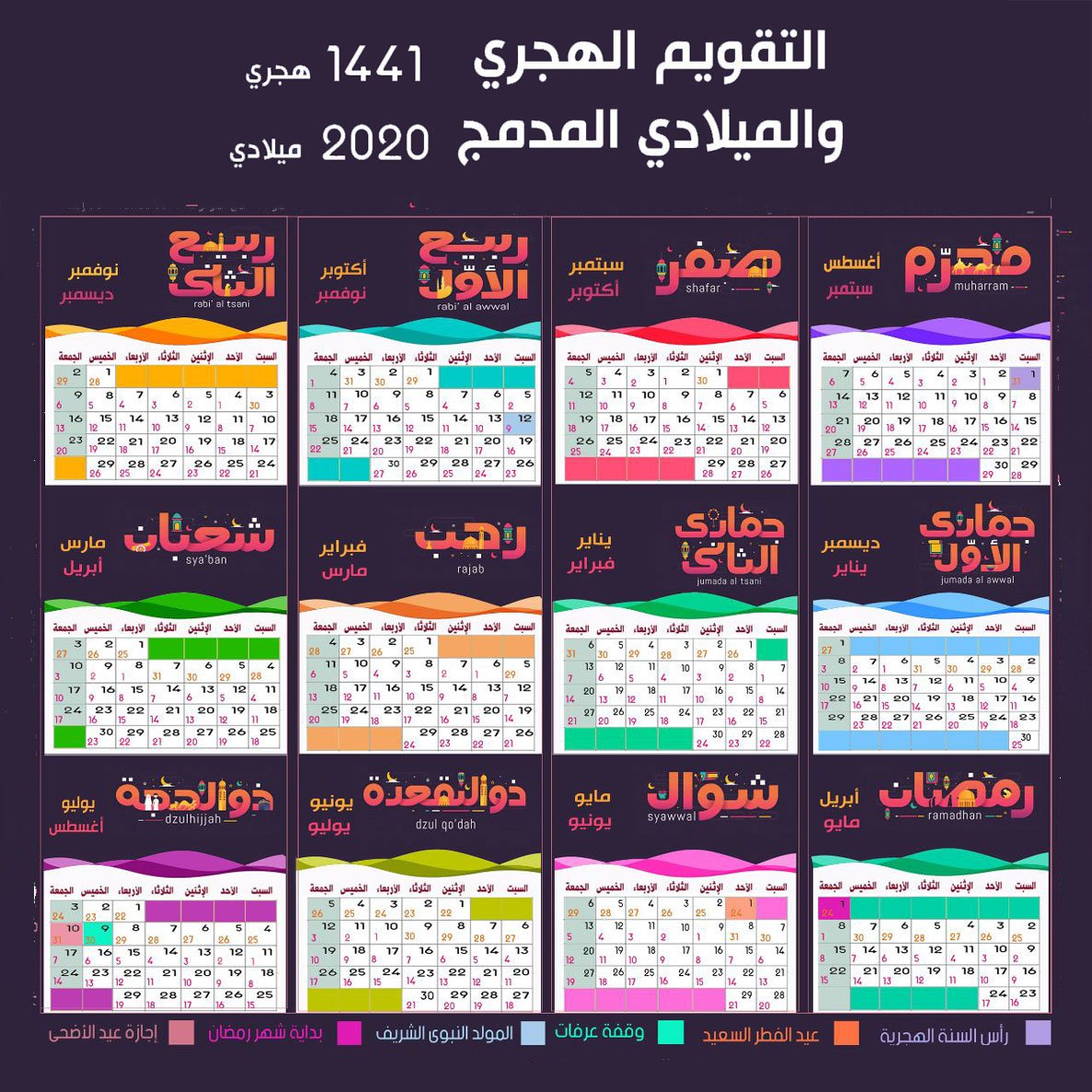 التقويم الهجري والميلادي لعام 1441هـ 2020م بالاجازات تكنو هوم