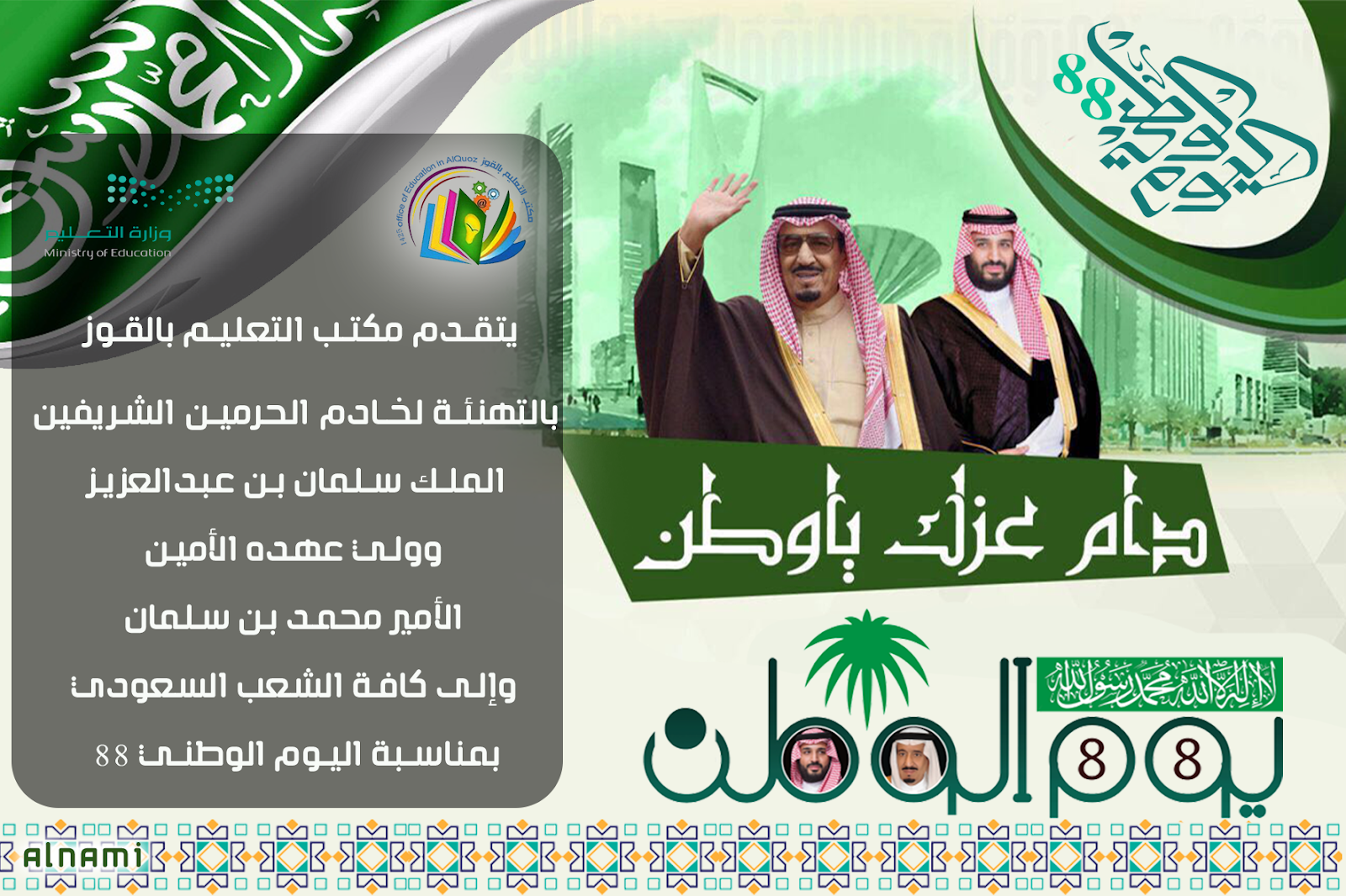 تهنئة باليوم الوطني 88 مكتب التعليم بالقوز الإعلام التربوي