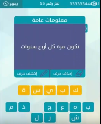 جواب لغز تكون مرة كل اربع سنوات من لعبة وصلة المجموعة السابعة لغز رقم 55 صقور الإبدآع