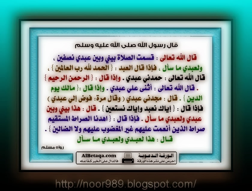 قسمت الصلاة بيني وبين عبدي نصفين موقع البطاقة الدعوي