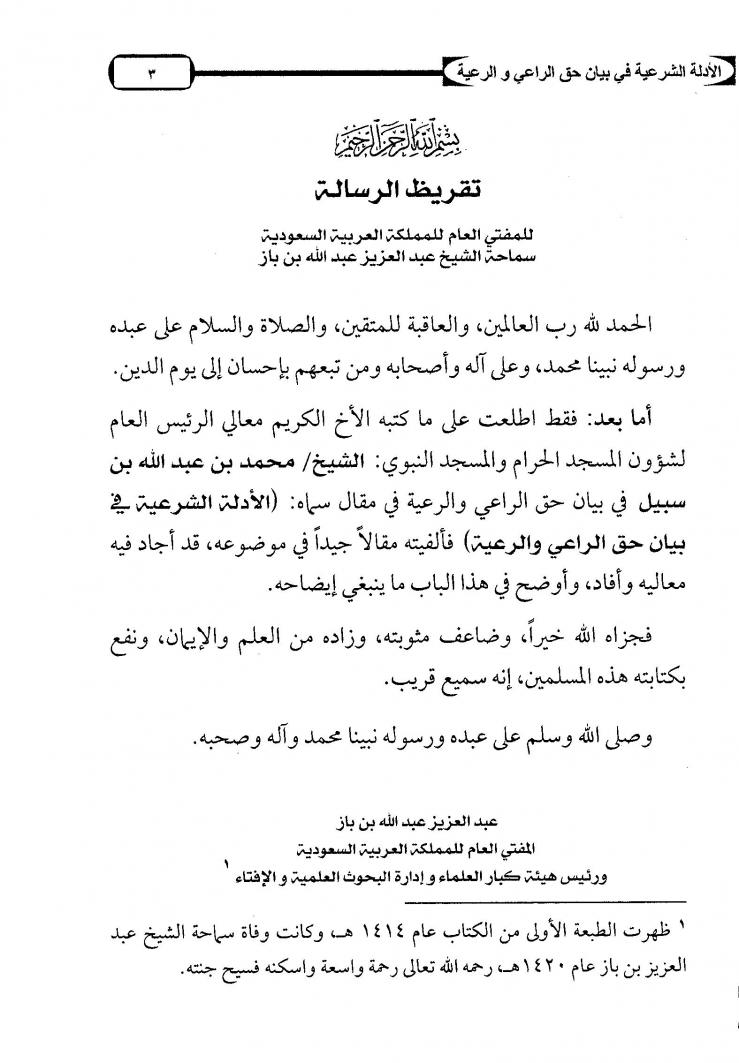 الأدلة الشرعية في بيان حق الراعي والرعية الشيخ محمد بن عبد الله السبيل رحمه الله منتديات الإمام الآجري