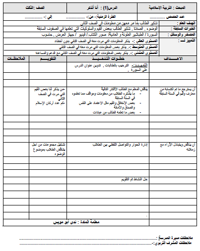نموذج Word تحضير أول 8 دروس لمادة التربية الإسلامية للصف التاسع الفصل الأول منتديات صقر الجنوب