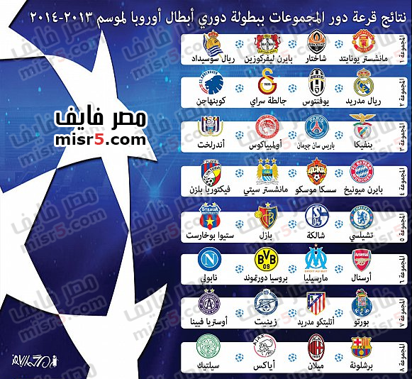 جدول دور المجموعات من دوري ابطال اوروبا 2014 2015 ثمان مجموعات