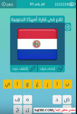 جواب لغز علم دولة فى امريكا الجنوبية من لغز رقم 74 من المجموعة التاسعة من لعبة كلمات متقاطعة صقور الإبدآع