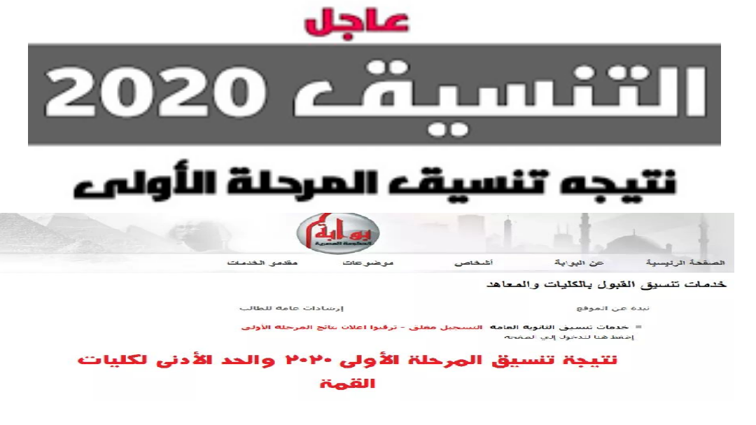 أعرف نتيجة تنسيقك دلوقتى رابط نتيجة تنسيق المرحلة الاولي 2020 عبر بوابة الحكومة المصرية تنسيق 2020 الوفد