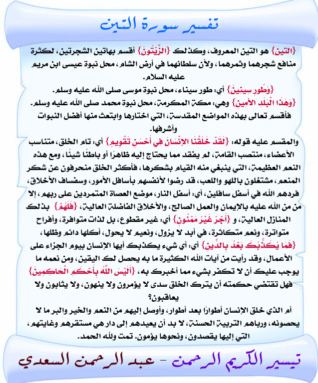 كلمات من نور موسوعة أ ل ـق ـر أ ن أ ل ـكـر ي م اسباب النزول لسور القران الكريم 95 سورة التين