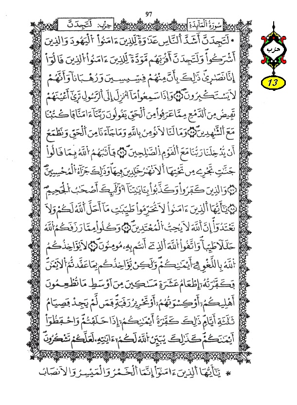 القرآن الكريم برواية ورش عن نافع مجزء الى أثمان حزب 13 لتجدن من سورة المائدة سورة الأنعام