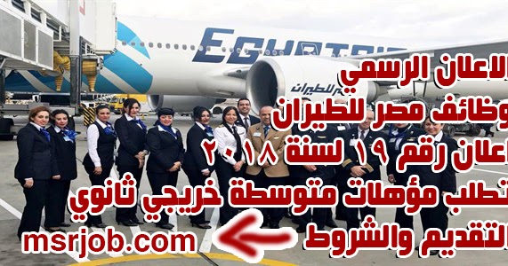 اعلان وظائف الشركة القابضة لمصر للطيران اعلان خارجي رقم 19 2018 تطلب ثانوي عام او مؤهل عالي